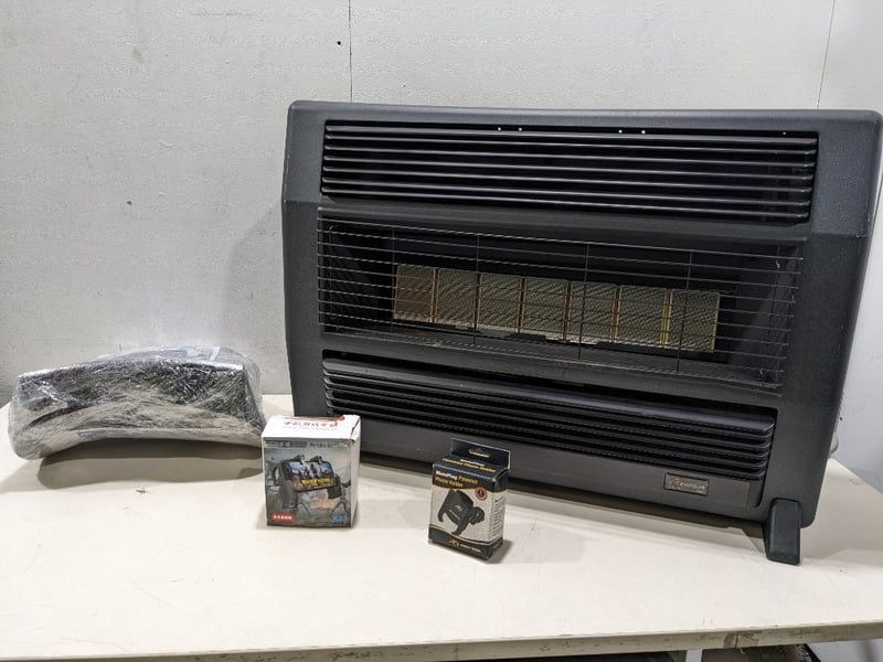 Assorted items includes, Everdure gas heater, portable game grip and more..Note: signs of wear and tear.Sold as a lot.