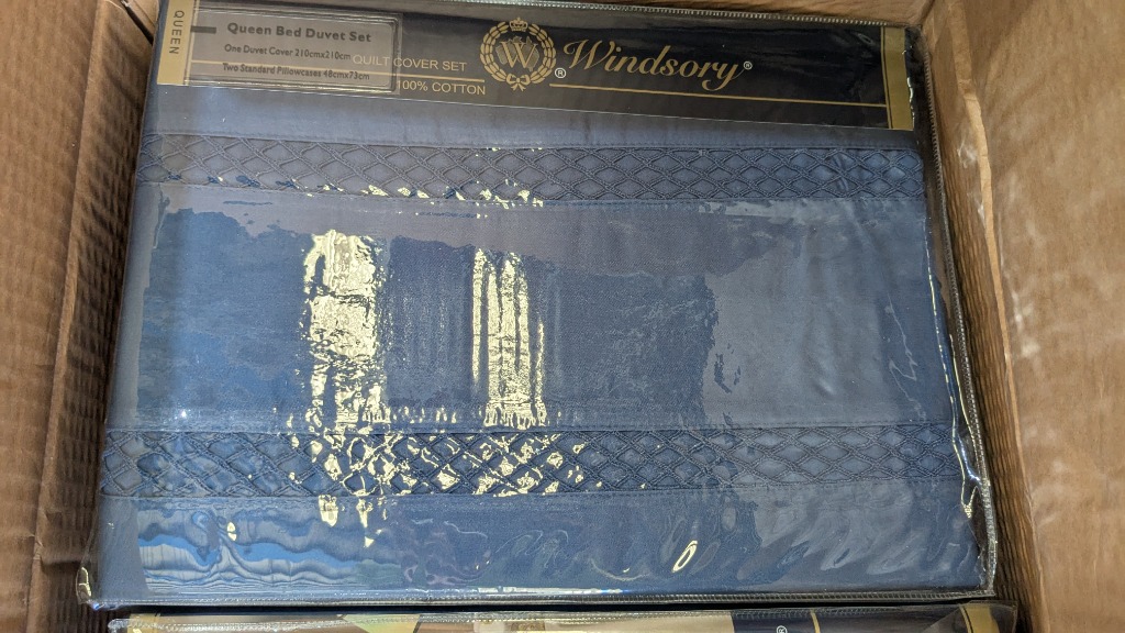 Box of Queen Bed Duvet Sets, Product Code: WCS10123-446, Includes One Cover and 2 Standard Pillow Cases, Colour: Dark Blue