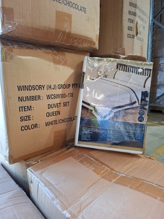 Box of Queen Bed Duvet Sets, Product Code: WCS09103-178, Includes One Cover and 2 Standard Pillow Cases, Colour: White/Chocolate