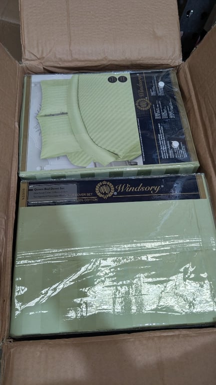 Box of Queen Bed Duvet Sets, Product Code: WCS08123-143 Includes One Cover and 2 Standard Pillow Cases, Colour: Green