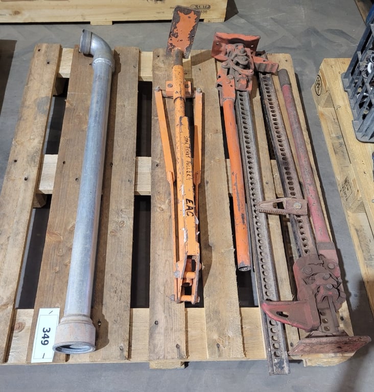 One Pallet holding 2 High-Lift Jack's, 1 Star Picket Puller and a Pipe.