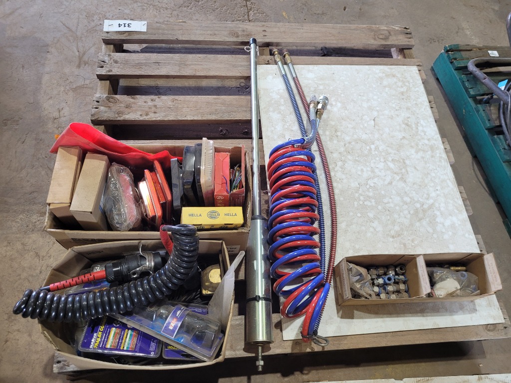 One Pallet holding Trailer Connections and Various Accessories. SOLD as LOT.