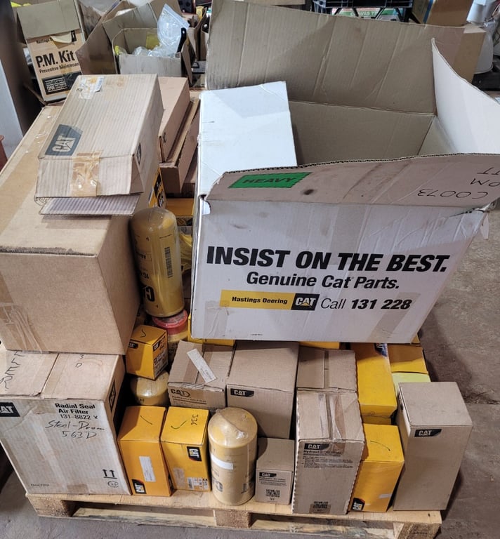 One Pallet holding Various and Assorted CAT Parts and More. SOLD AS LOT.