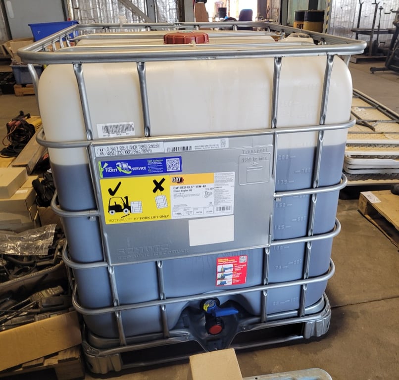 One 1000L CAT DEO-ULS 15W-40 Container of Diesel Engine Oil, Level is approximately just below 800L.