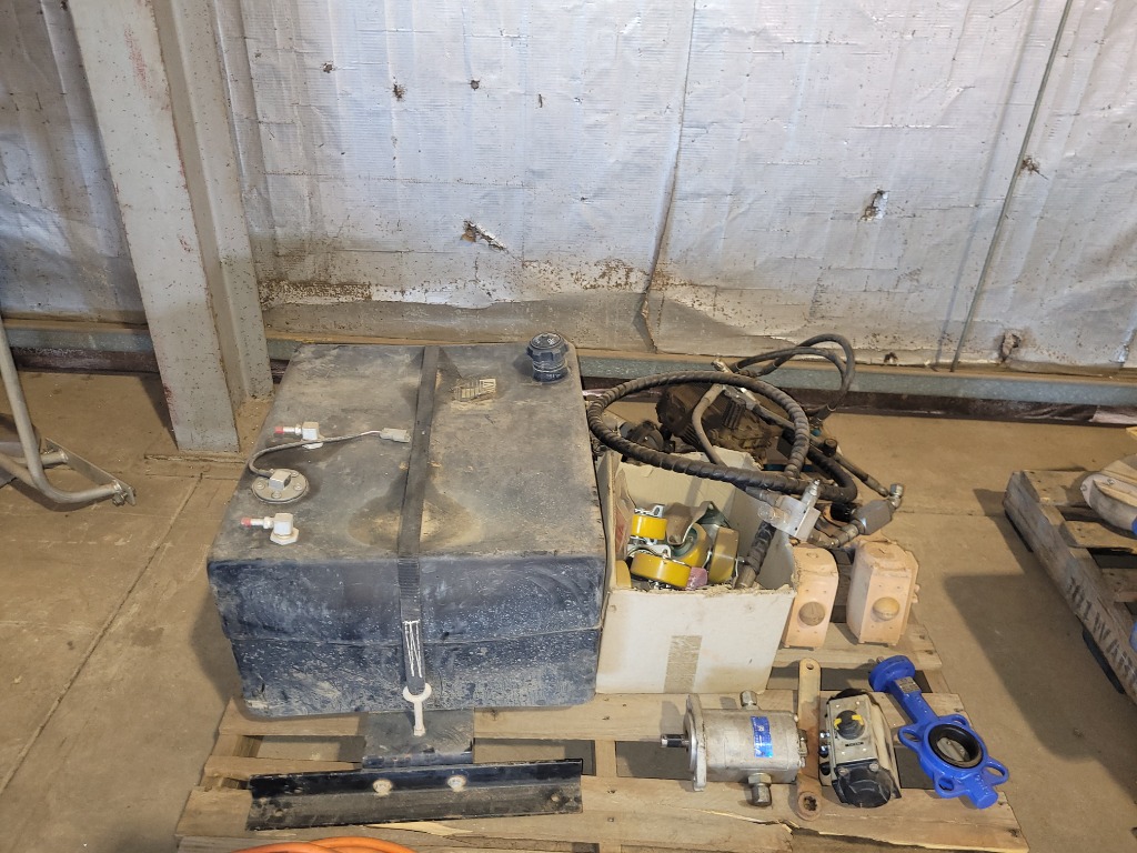 One Pallet holding a Diesel Fuel Tank, Various Pumps and More. Used Condition. SOLD as LOT.