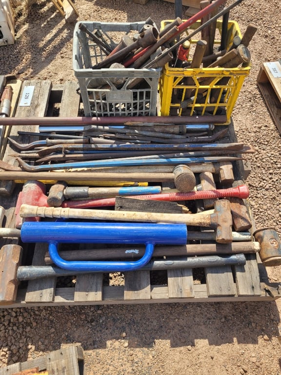 One Pallet holding Various and Assorted Hammering Tools. (See photos). Used Condition. SOLD as LOT.