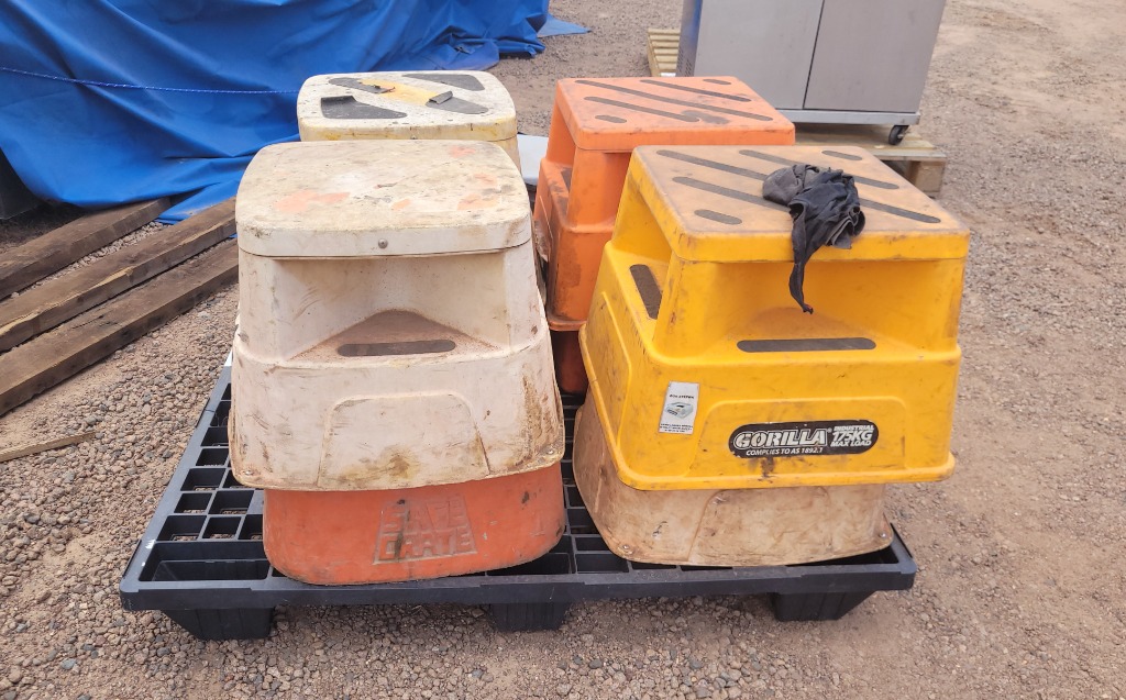 One Pallet holding Various Safety Steps. 8 in total. Used Condition. SOLD as LOT.