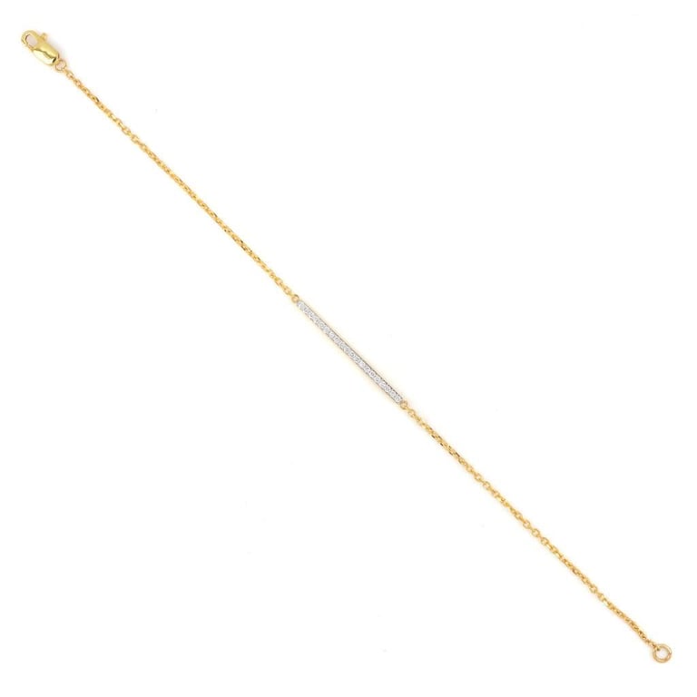 18K YELLOW GOLD 0.22 CT LAB GROWN DIAMOND BRACELET Total Item Weight: 2.5gms Size: 17.8cms Diamond Color: E-F Diamond Clarity: Vvs-Vs Crafted In 18K Yellow Gold, This Bracelet Features A Bar Studded With 20 Round Cut Diamonds Weighing Approx. 0.22 Ct With A Lobster Clasp.Gross Weight: 2.5 Gms.Length: 7 Inches (17.8 Cm) Markings: 750 Condition: Good - Refer Images 0488290+7