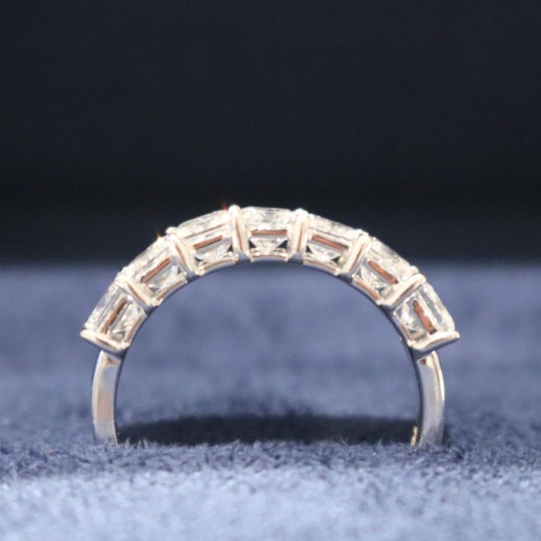 18K WHITE GOLD PRINCESS CUT LABGROWN DIAMOND BAND Total Item Weight: 3.1gms Diamond Color: E-F Diamond Clarity: Vvs-Vs This Luxuriousband Features 7 Princess Cut Labgrown Dimaonds Weighing 1.87 Ct With E-F Color And Vvs-Vs Clarity. Crafted In 18K White Gold, This Ring Offers A Striking Blend Of Brilliance And Modern Elegance. Diamond Size 3.5MmBand Width: 5.2MmRing Size: M (Aus / Nz), 6 ( Us / Can) Markings: 750 Condition: Good - Refer Images 0488290+9