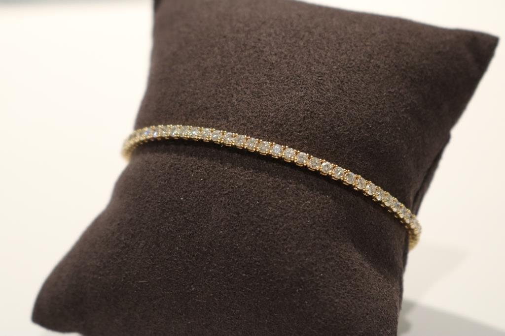 18K YELLOW GOLD TENNIS BRACELET WITH 3.16 CT LAB-GROWN DIAMONDS Total Item Weight: 8.53gms Size: 17.8cms Diamond Color: E-F Diamond Clarity: Vvs-Vs A Luxurious 3.16 Ct Tennis Bracelet With A Box Clasp And Double Safety Latch. Adorned With 74 Meticulously Set Round Lab-Grown Diamonds Set In 18K Yellow Gold. With A Gross Weight Of 8.53 Grams, This Bracelet Exudes Elegance And Brilliance.Diamond Quality: Vvs-Vs, Color EfDiamond Size: 2.2 MmLength: 7 Inch (17.78 Cms)Perfect For Adding A Touch Of Glamour To Any Outfit. Condition: Good - Refer Images 0488290+18