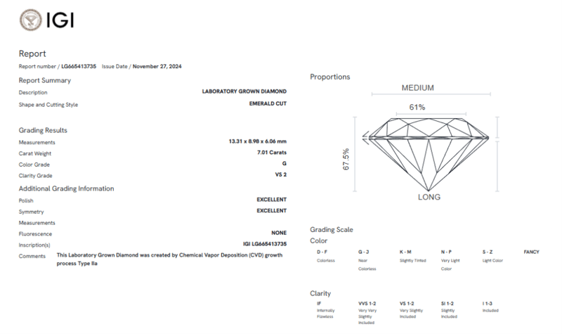 7.01 CARATS G/VS2 LAB GROWN DIAMOND - IGI CERTIFIED