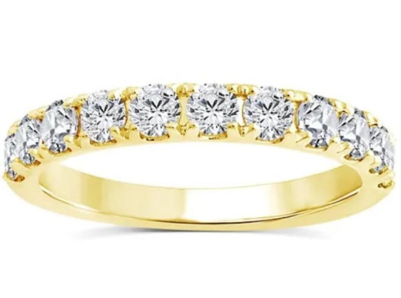 9K Yellow Gold 1.00Ct F Vs Lab Diamond Claw Set Band