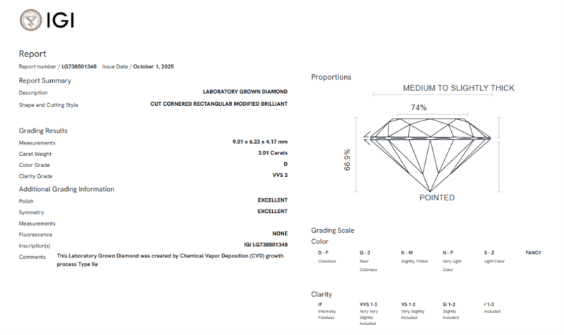 2.01 Carats D/Vvs2 Lab Grown Diamond - Igi Certified