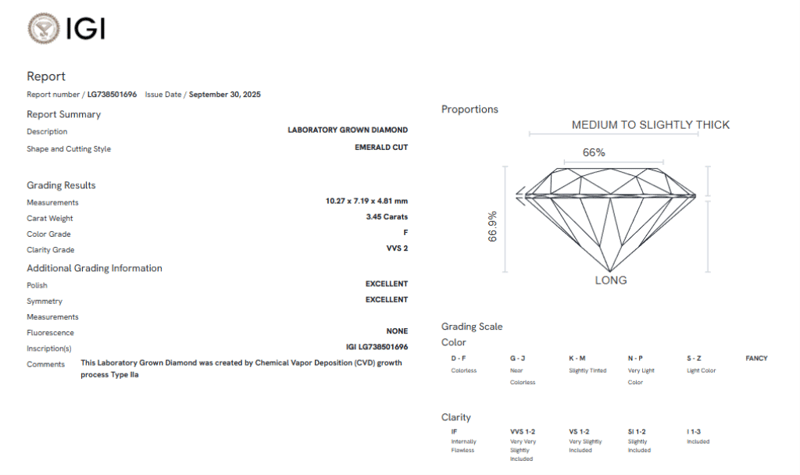 3.45 Carats F/Vvs2 Lab Grown Diamond - Igi Certified