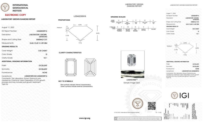 Igi Certificate # Lg 542235916 Laser Inscribed : Labgrown Igi Lg 542235916 Polish : Excellent Symmetry : Excellent Flourescence : None Type : Cvd