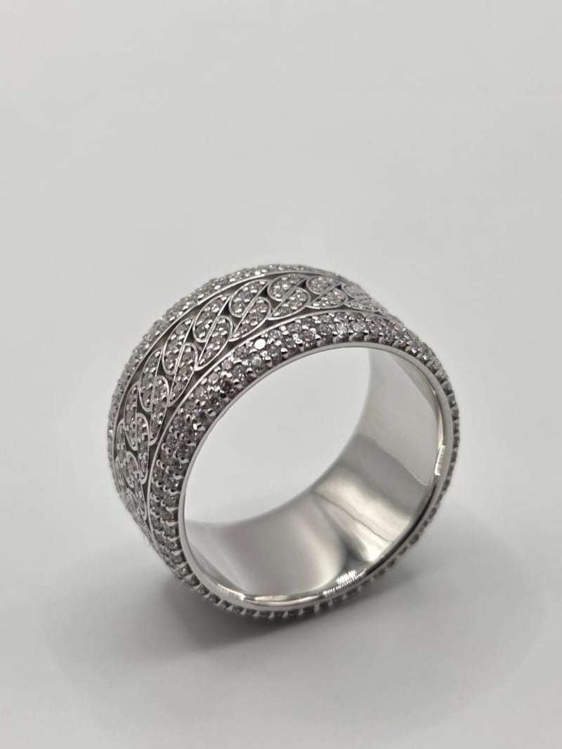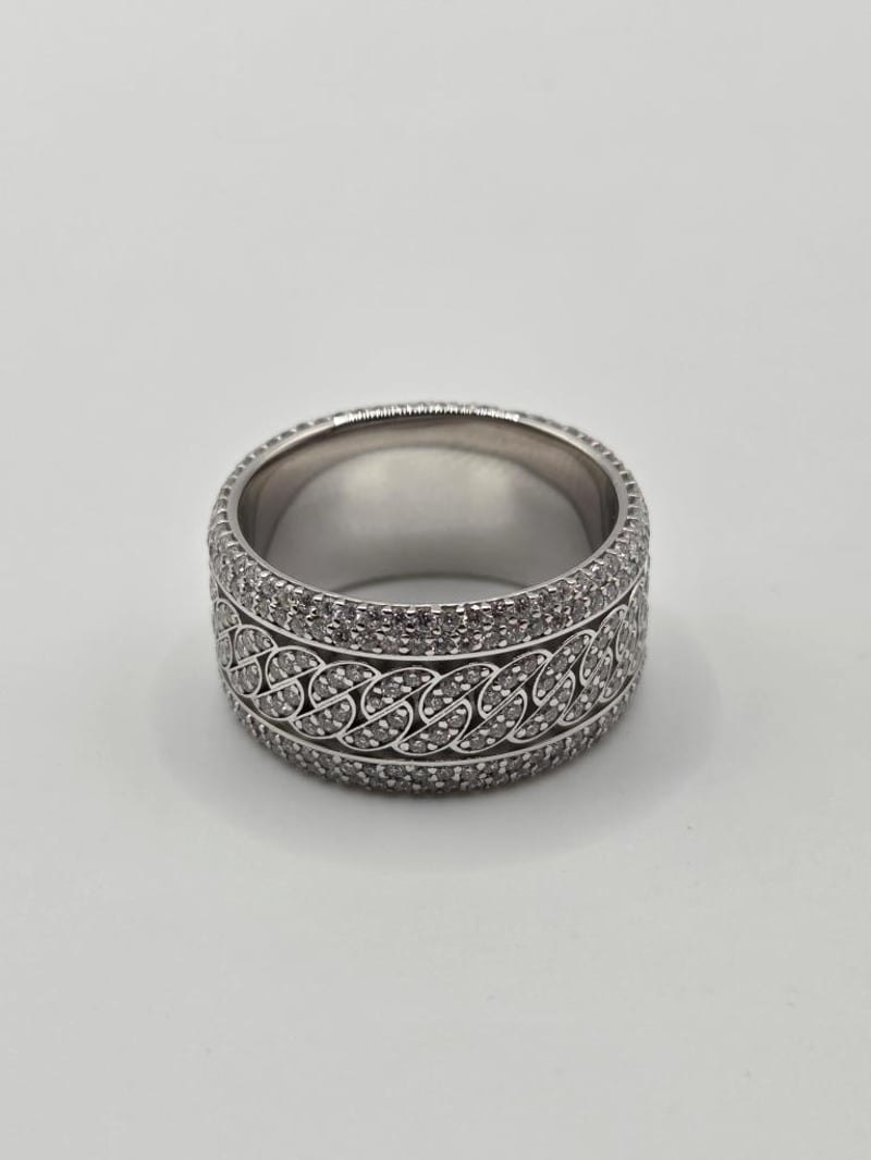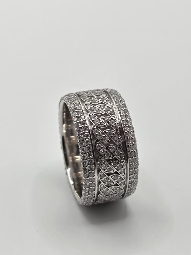 2.574CT LAB DIAMOND RING – WIDE CUBAN LINK BAND, 925 SILVER GOLD VERMEIL, SIZE US 11