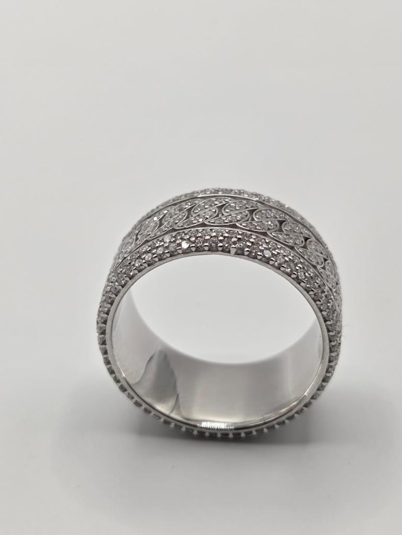 Wide Cuban-Link Pattern Ring Set With 2.574 Carats Of Lab-Created Diamonds. Crafted From Solid 925 Sterling Silver With A Gold Vermeil Finish For A Bold, High-Luxury Look. Substantial Weight And Premium Setting Make It Ideal For Statement Wear.
