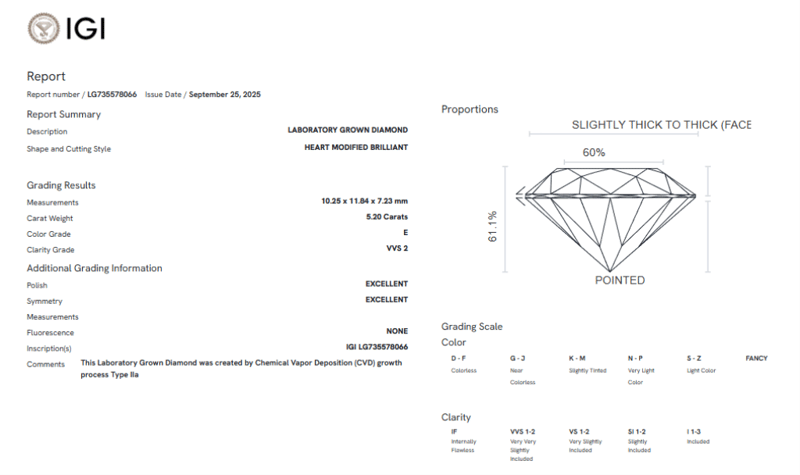 Please note that while all lab grown diamonds listed include certification, the report number or identification may vary upon arrival. This is due to standard manufacturing and batching processes. However, the diamond’s specifications — including carat, color, cut, and clarity — will match or may even exceed those advertised.