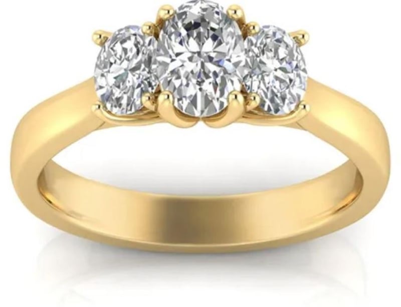 9CT YELLOW GOLD 1.00CT F VS LAB DIAMOND OVAL TRILOGY RING