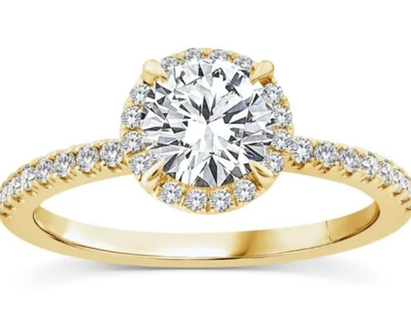 9CT YELLOW GOLD 1.25CT F VS LAB DIAMOND RND HALO RING