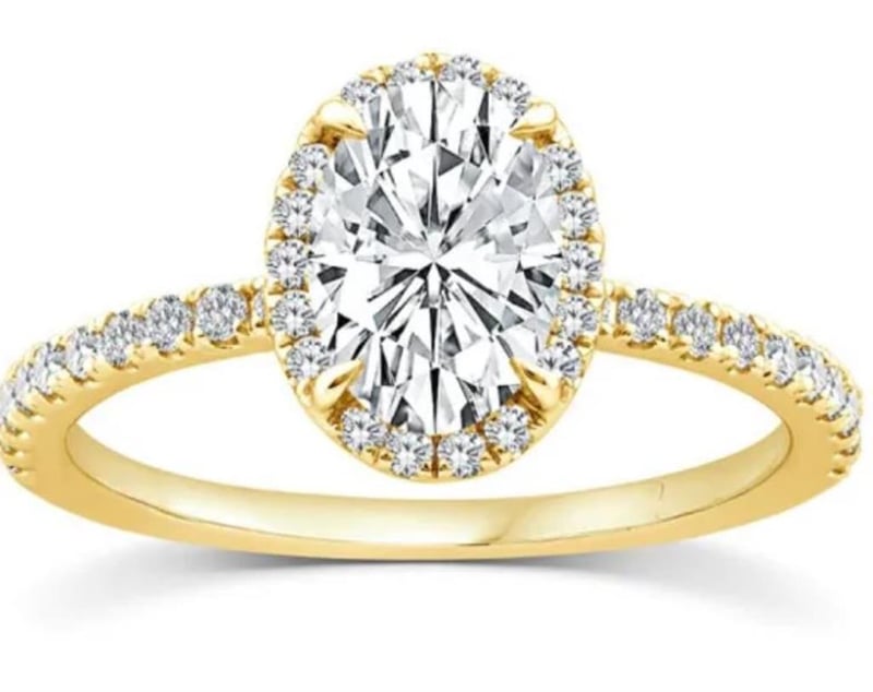 9CT YELLOW GOLD 1.25CT F VS LAB DIAMOND OVAL HALO RING