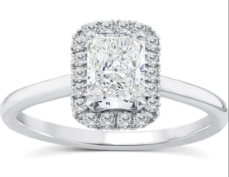 9Ct White Gold 1.15Ct F Vs Lab Diamond Radiant Halo Ring