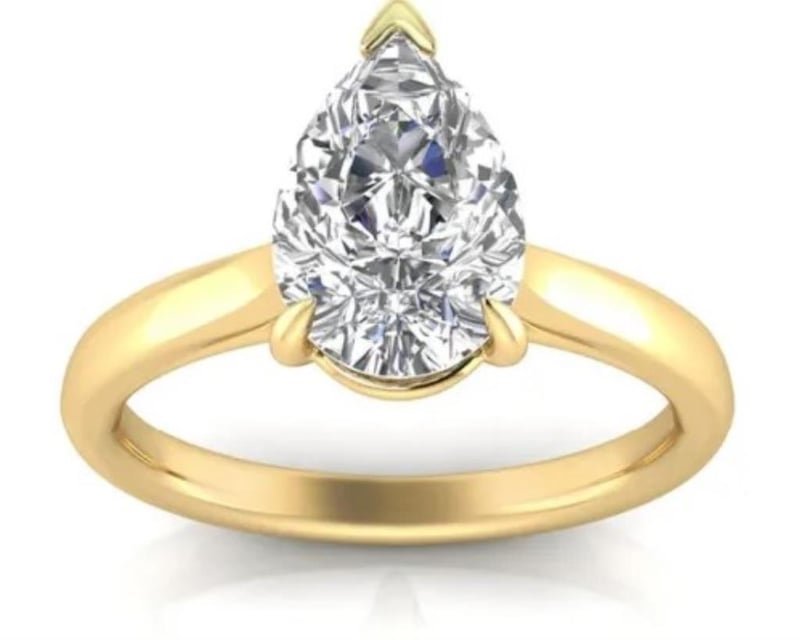 9K YELLOW GOLD 2.00CT F VS LAB DIAMOND PEAR 3 CLAW RING