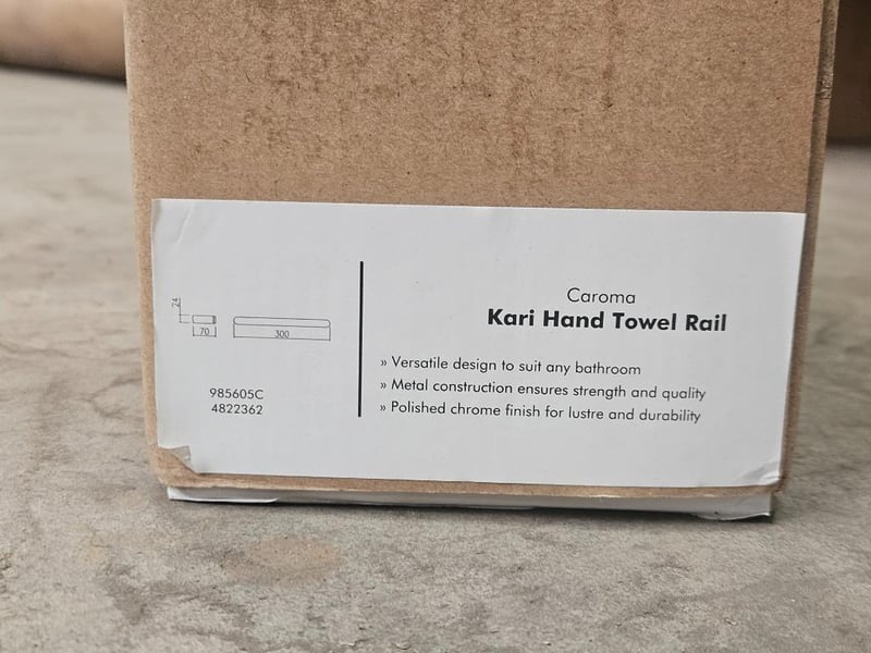RRP $196.08, Hand Towel Rail 300mm, Caroma, Model No. 985605C Qty: 6