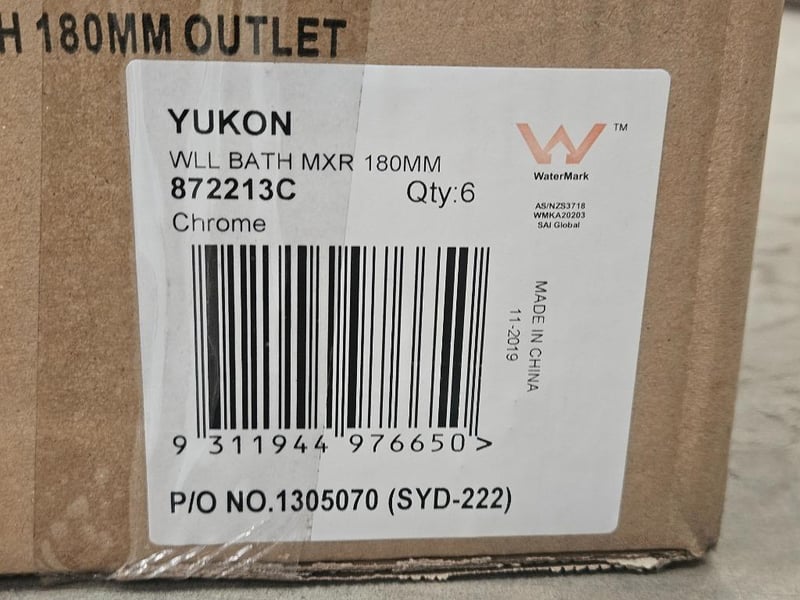 RRP $2139.54, Yukon Wall Bath Mixer 180mm, Yukon, Model No. 872213C,