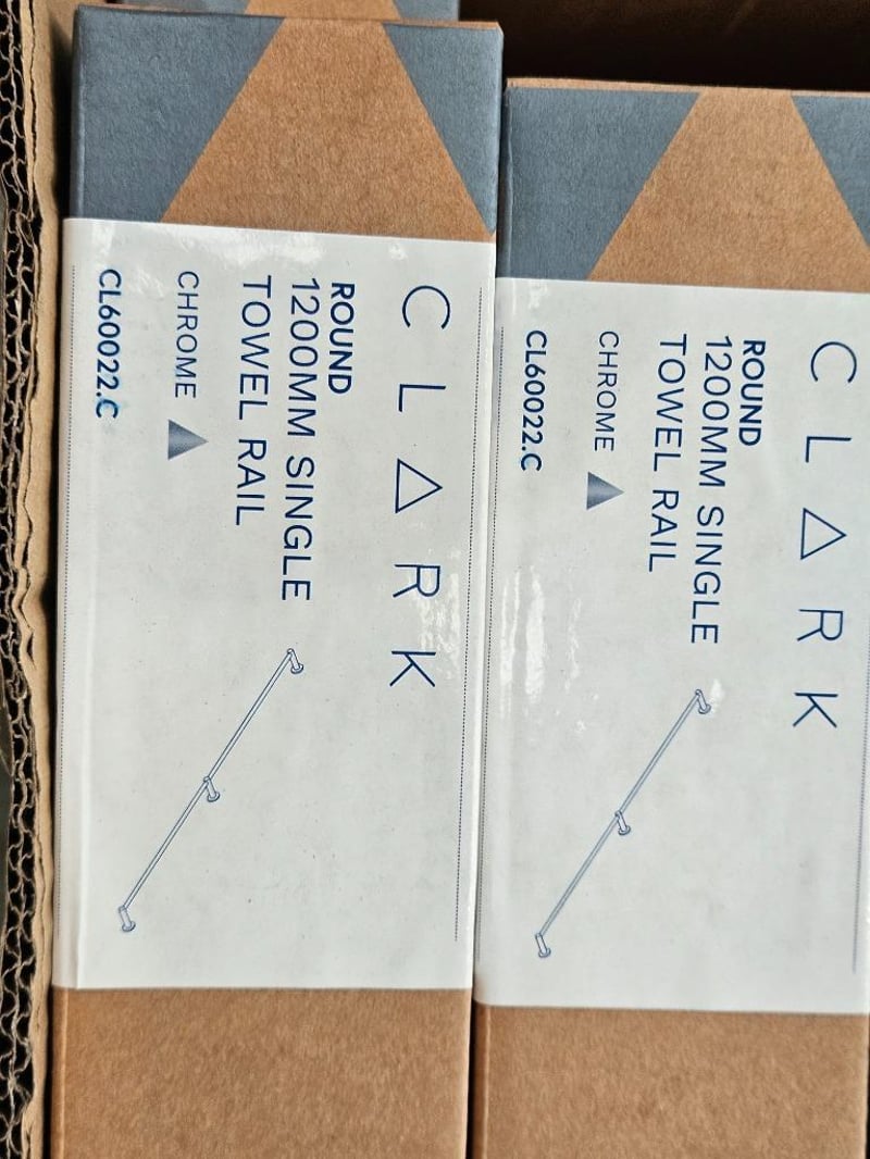 RRP $1386.00, 1200mm Single Towel Rail, Clark, Model: CL60022.C Qty: 21