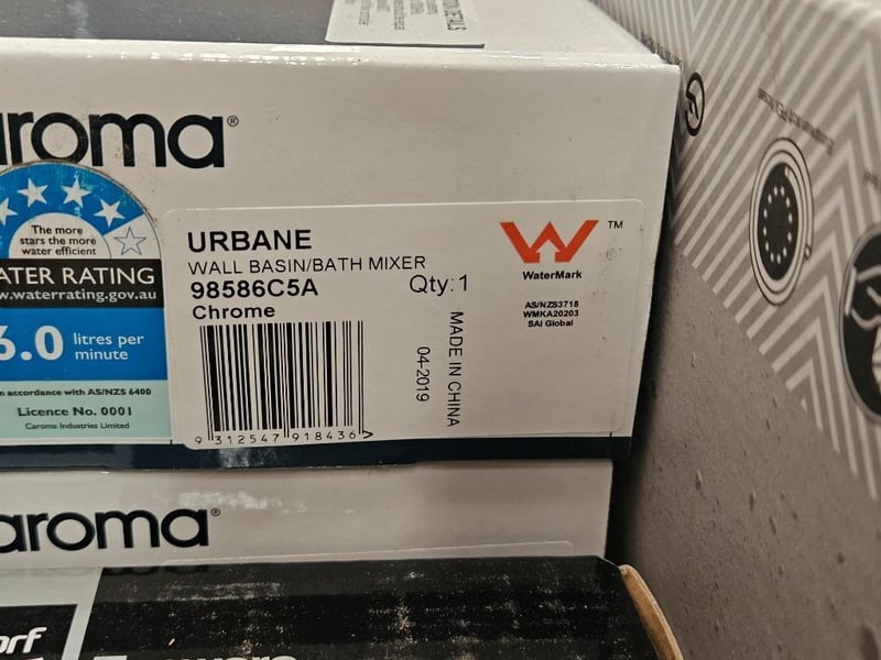 RRP $927.00, Urbane Wall Basin/ Bath Mixer, Caroma, Model: 98586C5A