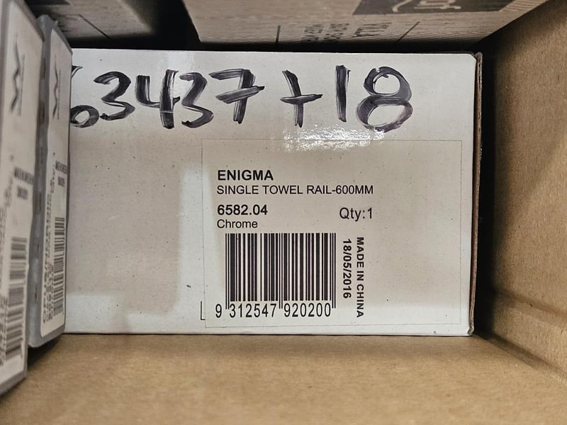 RRP $151.00, ENIGMA, Single Towel Rail-600mm, Dorf, Model 6582.04, Chrome