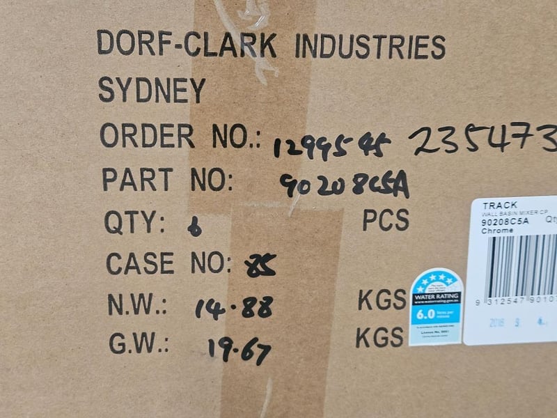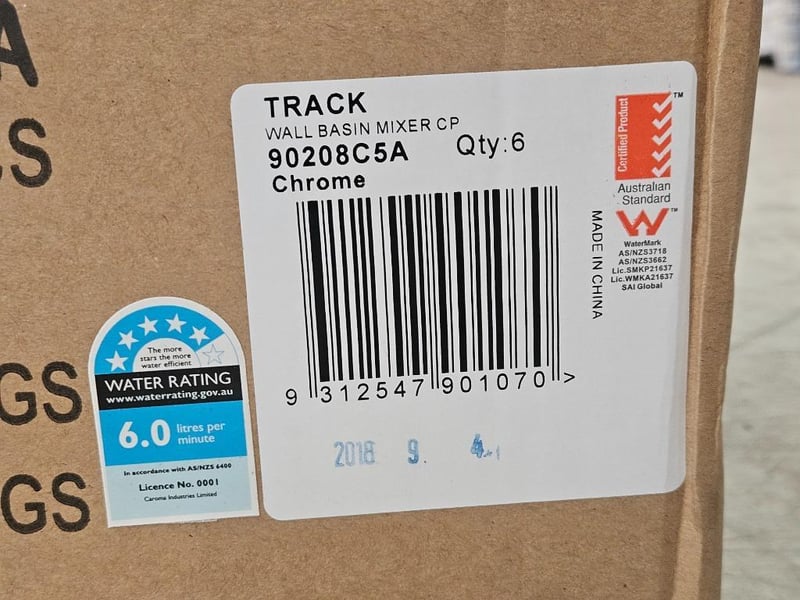 RRP $4339.92, Track Wall Basin Mixer, Caroma, Model No. 90208C5A