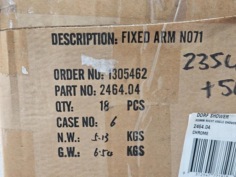 RRP $2200.00, Luna 305mm Right Angle Shower Arm, Dorf, Model No. 2464.04