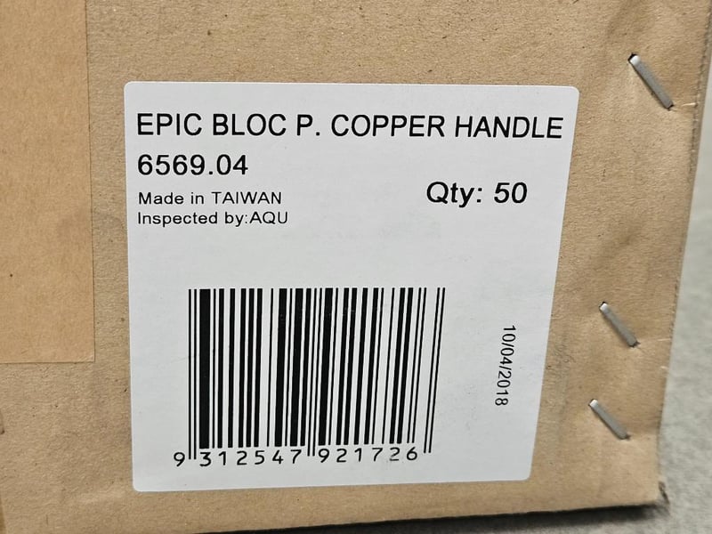 RRP $6775.50 Epic Bloc Progressive Copper Handle, Dorf, Model: 6569.04, Qty: 50
