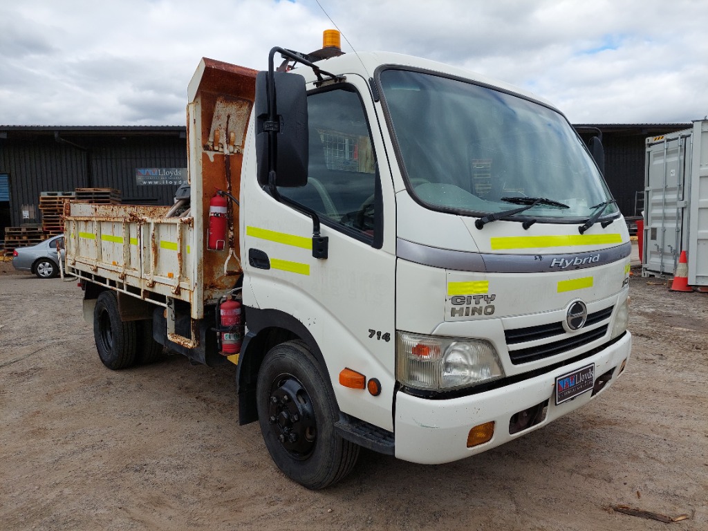 2009 Hino 300 Year: 2009 Make: Hino Model: 300 Body: 2-Door Tipper Truck Drive Type: Rear wheel drive Odometer: Indicating 122,375 Kilometers Engine: 4.0 I4 Turbo Diesel Transmission: 5-Speed Manual Configuration: 4 x 2 Body: Tipper Colour: White Seats: 3 Description/extras: Air Conditioning, Power windows, SRS. 2009 Hino 300 Tipper Crane White, Crane, Isolator Switch, Anderson, Plug, UHF, 200 Litre diesel tank, Two way tail gate, Tray / body size: 3300mm L x 2080mm W x 480mm H GVM: 6500 kg GCM: 10000 kg VIN: JHFUV11H00K001012 ENG No: N04CTN13954 (Key #CTM7) Lloyds stock #581697+1