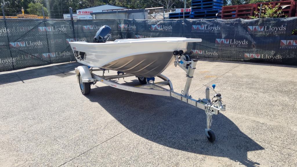 **Brand New 2025 Quintrex 390 Explorer Year: 2025Make: QuintrexModel: 390 ExplorerBoat Type: RiverboatHull Type: V-HullHull Material: AluminiumHIN #: AUTRX81369F525Length: 3.9 MetresDescription/extras: Yamaha F25LMHC Long Shraft, Manual Start, Manual Tilt & Trim, Casting Platform, Floor Carpeted Low, Fuel Tank Rack (carpeted), Side Decks Extruded, Thruster Plate Bow Mount, Painted Hull ( Telwater quantum white), Transducer Bracket, Quintrex Stripe, Deluxe Safety Bag, Ratchet Straps. WITH AN OUTBOARD ENGINE:Make: YamahaModel: F25LMHCYear: 2025Engine No: 6FMKL1089747Size: 25Fuel Type: LPG OnlyON A TRAILER:Year: 2025Make: TelwaterModel: TALS749S13ATM: 749 KilosVIN: 6HWB0ATRLSC930382(Key # unknown)Lloyds stock # 234075+3#MMR