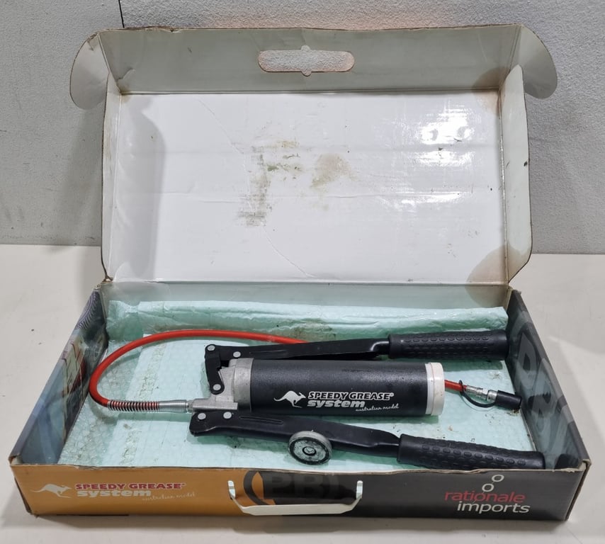 Speedy system grease gin, australian model. Note: Signs of of oil and grease on outer carton.