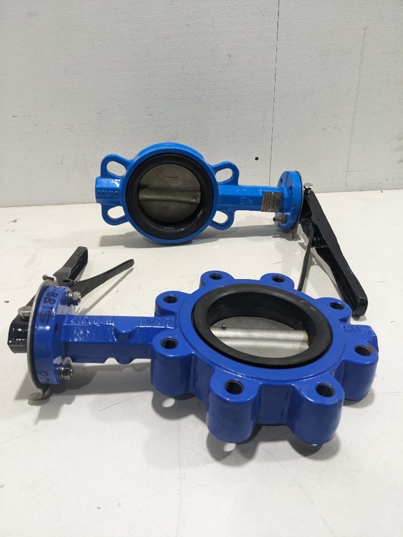 Assorted industrial butterfly valves, heavy duty with lever handle.Sold as a lot.