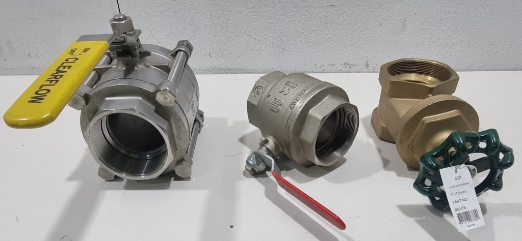 Assorted valve lot, includes ball and gate valves. Sold as lot