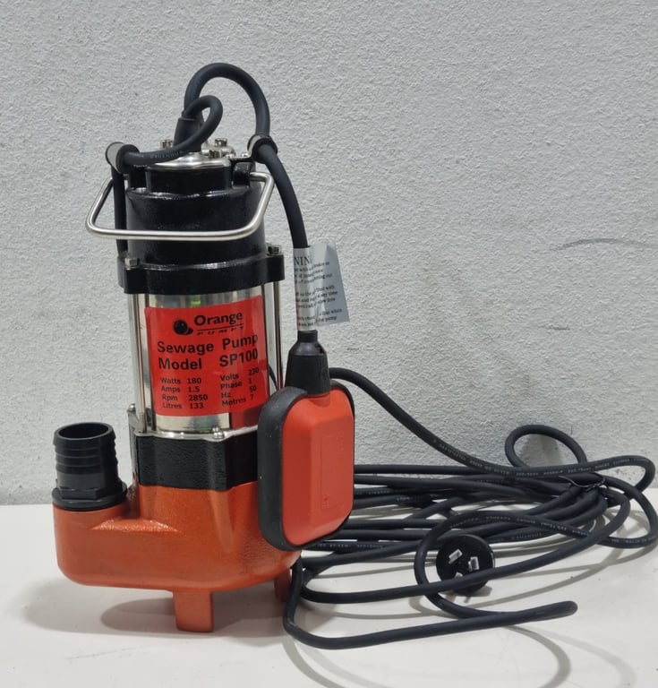 Orange pumps, sewage pump.Model sp100, voltage230Note: untested