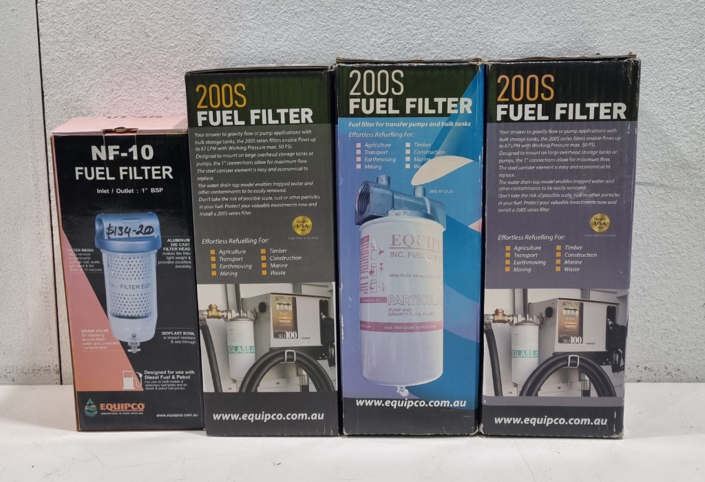 Equipco fuel filter lot, includes various types nf-10 filter and 200s fuel filter Sold as lot Note: untested