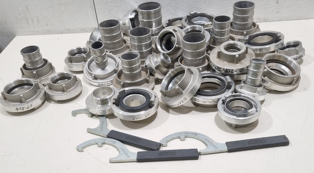 Storz industrial lot, includes storz coupling spanner and storz aluminium hose fittings Sold as lot