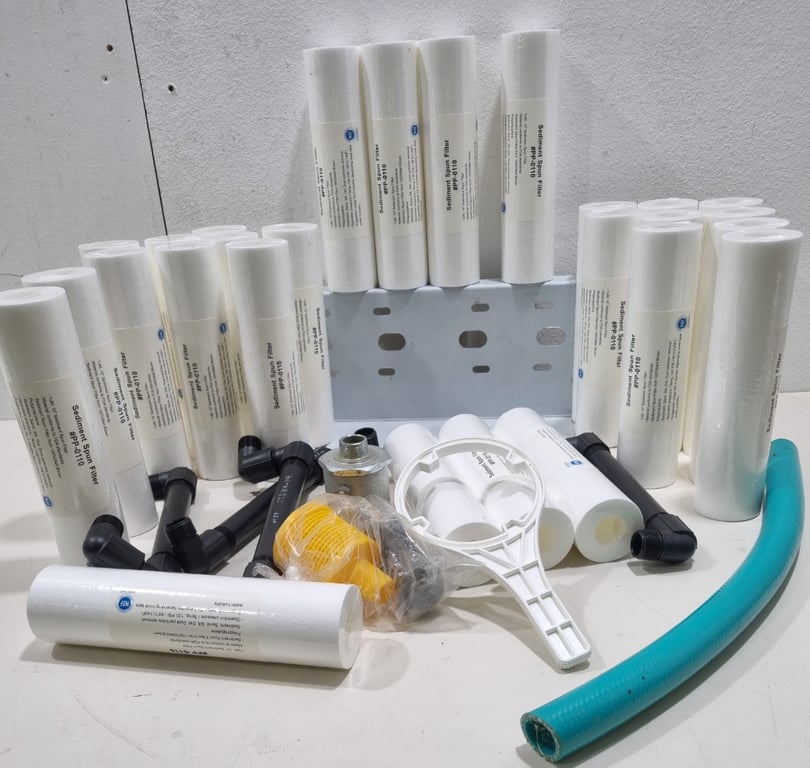 Assorted industrial lot,includes sediment spun filter, filter bracket and more..... Sold as lot