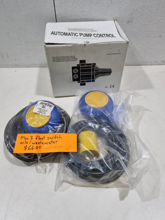 Assorted industrial items, includes 2 x float switch mac 3 m-5 and automatic pump control. Sold as lot