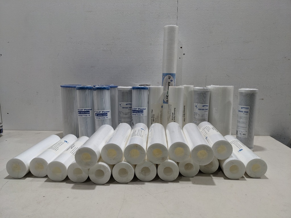Assorted industrial items, includes carbon block filters, large sediment cartridge and more...Sold as a lot.