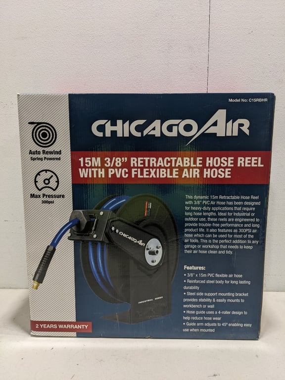 Chicago air 15m retractable hose reel with PCV flexible air hose 3/8" Model: C15RBHR
