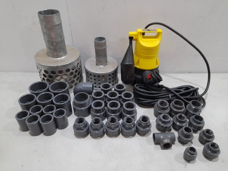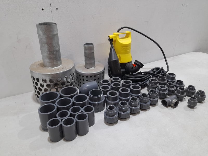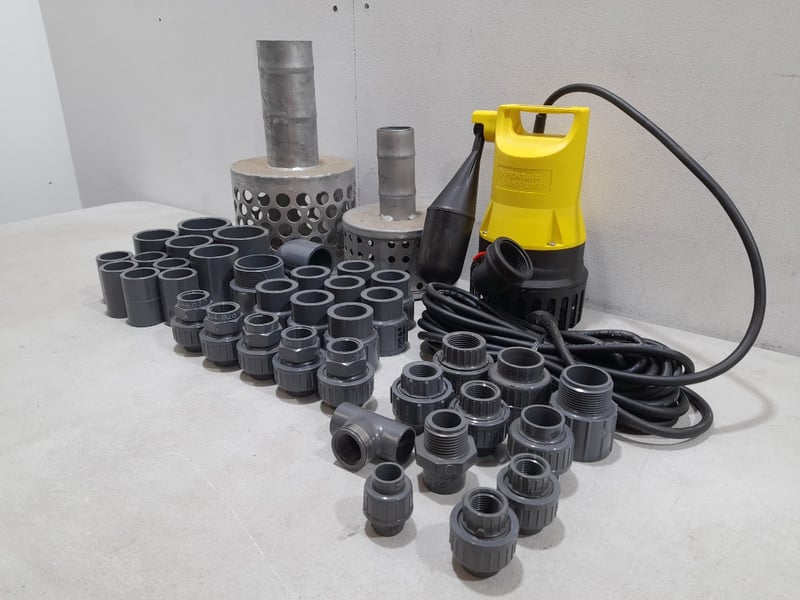 Submersible Pump & Bulk PVC Pipe Fittings, Steel StrainersNote: Pump details, German-Made Pentair U3 KS Submersible Pump (320W/7m Head)Sold as lot