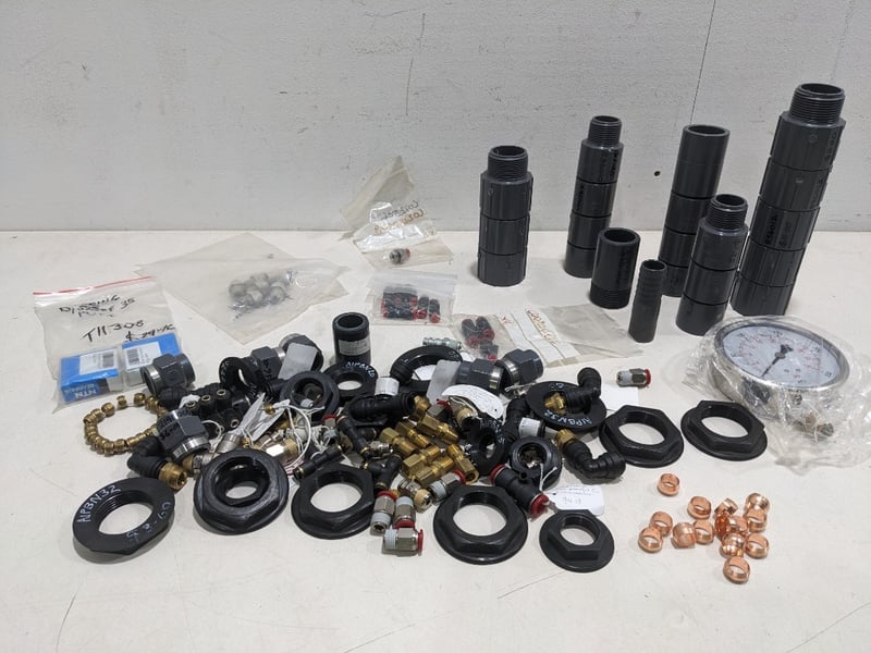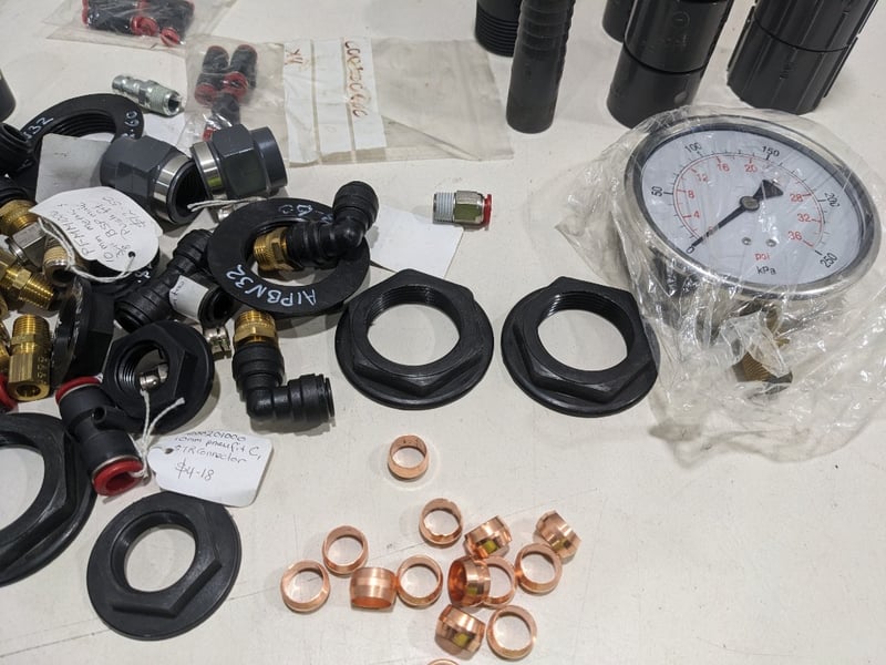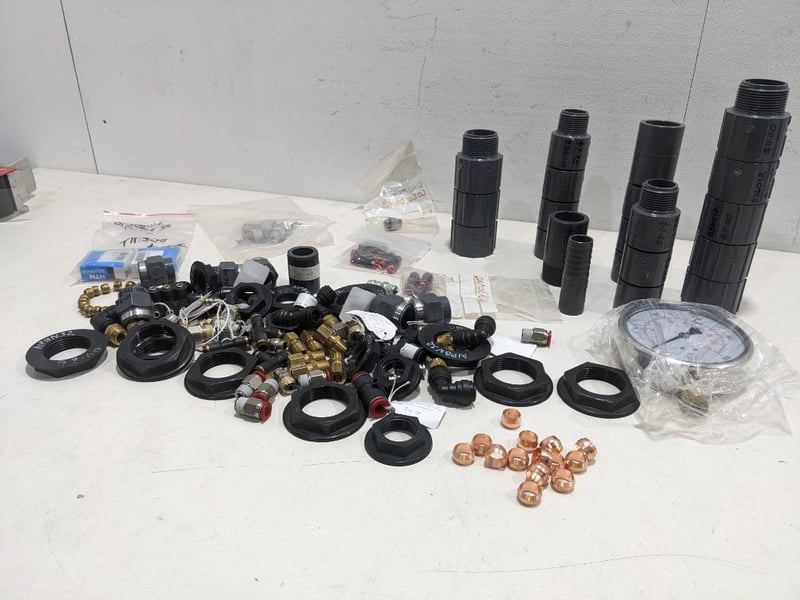 Assorted industrial fittings and items, includes rubber grommets, copper compression rings and more...