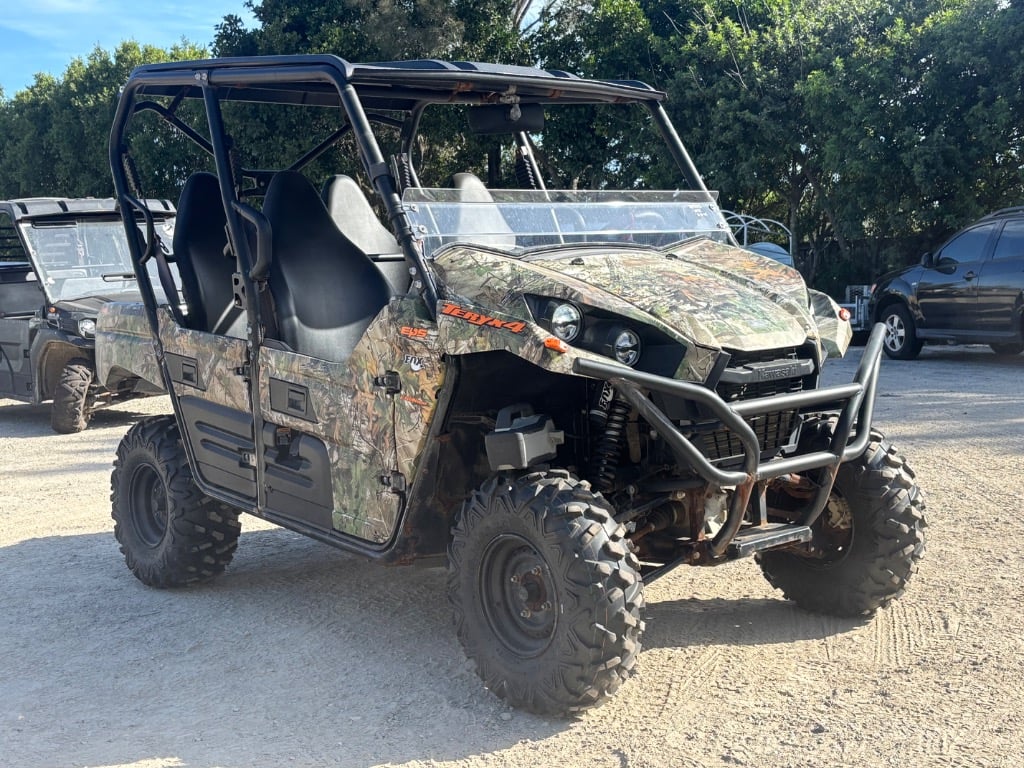 2021 Kawasaki Utility factory LHD Year: 2021 Make: Kawasaki Model: TERYX4 EP5 Body: Buggy Drive Type: FWD or 4WD Odometer: Indicating 5048 Hours Engine: 783 cc 2-cylinder V-Twin, 4-stroke Transmission: CVT Colour: Black and Camo Seats: 4 VIN: JKBRTCH10MB503430 ENG No: UNSIGHTED Interior: - Marks, Smudges and Wear on Trim and Upholstery - Handbrake doesn’t work. - Steering doesn’t work - Alternator doesn’t keep charge - Flat Battery - Surface and Structural Rust Present Inside the vehicle Exterior: - Heavy Surface and Structural Rust present throughout - Panel Scratches, Dents and Marks Advised to inspect before bidding. SOLD UNREGISTERED key# M72 Carrara